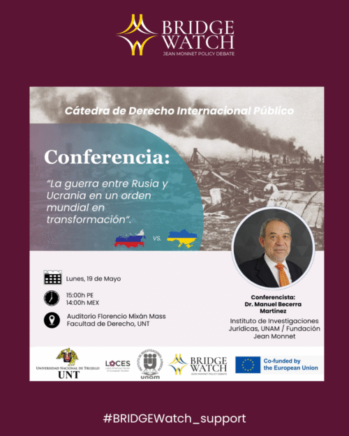 On Monday, the 19th, the conference “La guerra entre Rusia y Ucrania en un orden mundial en transformación” will take place at the Universidad Nacional de Trujillo (UNT). The lecture will be delivered by Professor Manuel Becerra from Universidad Nacional Autónoma de México, a partner of the Jean Monnet Policy Debate Bridge Watch.