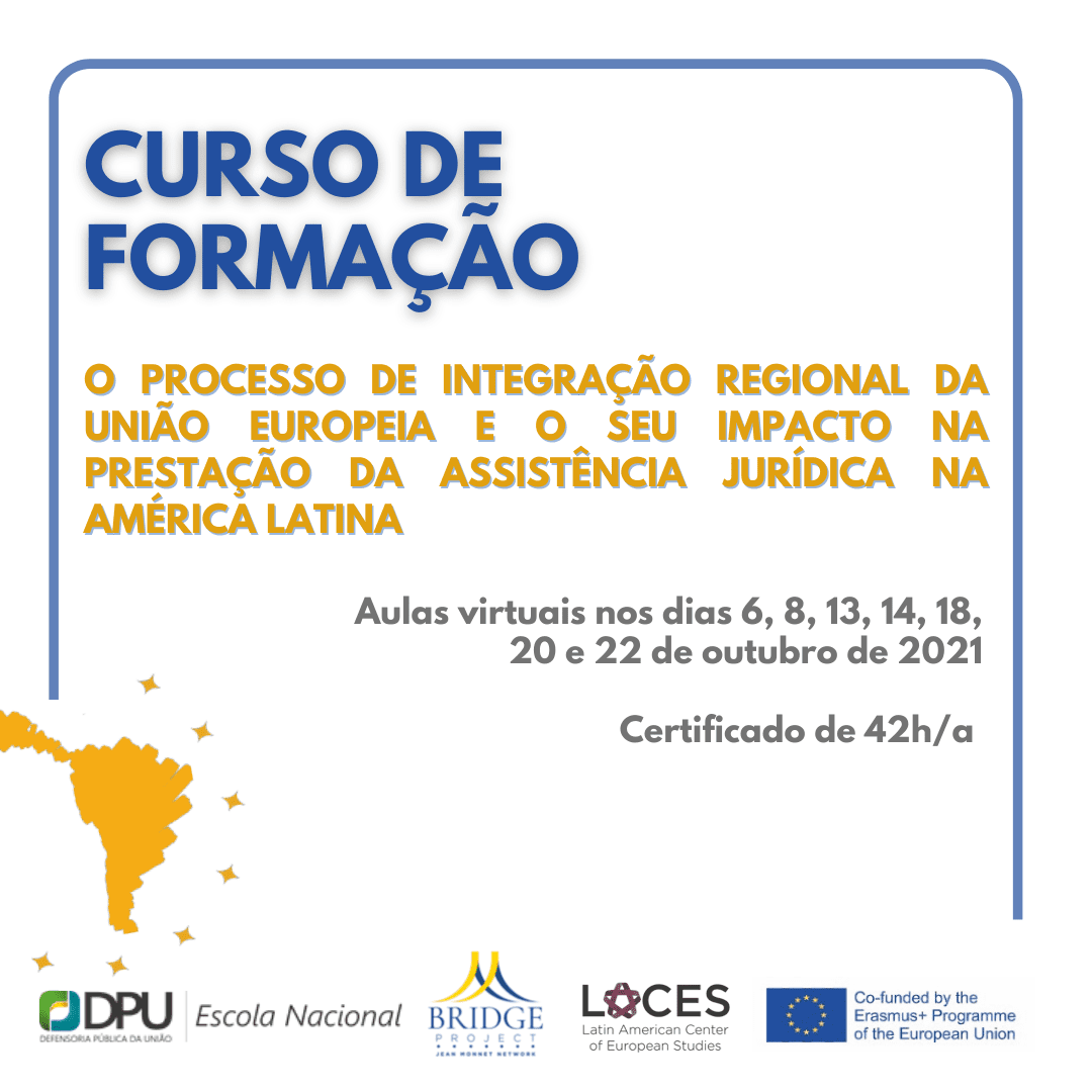 The training course has been organizing by the Jean Monnet Network – BRIDGE Project, co-funded by the Erasmus+ Programme of the European Union, the Latin-American Center for European Studies – LACES, in partnership with the Escola Nacional da Defensoria Pública da União – ENADPU (Brazil)