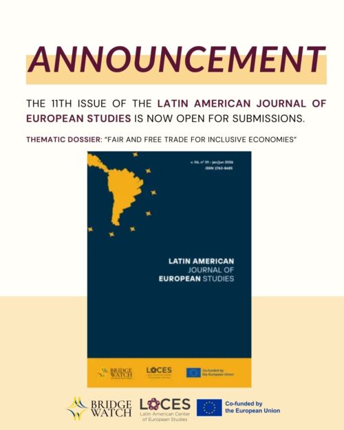 The Latin American Journal of European Studies (ISSN 2763-8685) is a publication of the Latin American Center of European Studies (LACES), currently supported by the Jean Monnet Network Policy Debate “BRIDGE Watch” project with funding from the Erasmus + Programme of the European Commission.