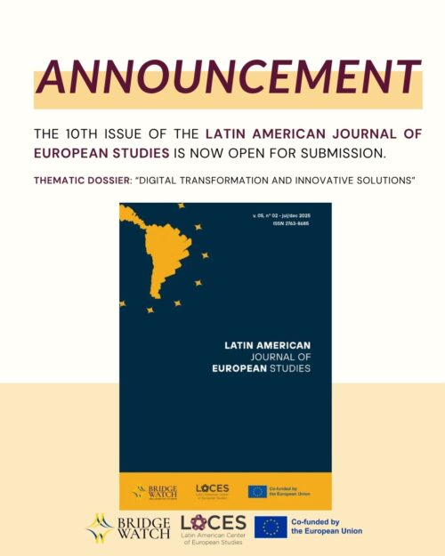 The Latin American Journal of European Studies (ISSN 2763-8685) is a publication of the Latin American Center of European Studies (LACES), currently supported by the Jean Monnet Network Policy Debate “BRIDGE Watch” project with funding from the Erasmus + Programme of the European Commission.