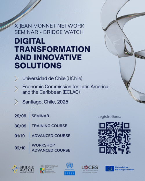 The program of the X Jean Monnet Network BRIDGE WATCH Seminar has just been released. The event will take place from September 29 to October 2, 2025, in Santiago, Chile, hosted by the University of Chile and the Economic Commission for Latin America and the Caribbean (ECLAC).