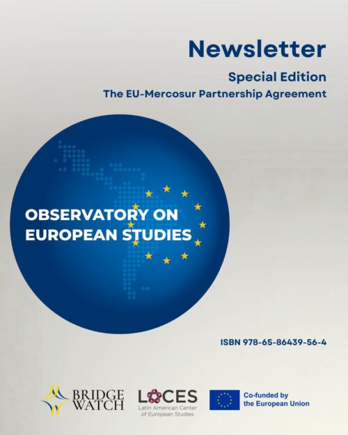 El Observatorio de Estudios Europeos lanza una edición especial de su Newsletter, dedicada al tema “El Acuerdo Unión Europea–Mercosur”. Esta edición reúne 26 contribuciones de investigadores que participaron en el Modelo UE Brasil, realizado en Brasilia (DF), entre los días 25 y 27 de septiembre de 2025.