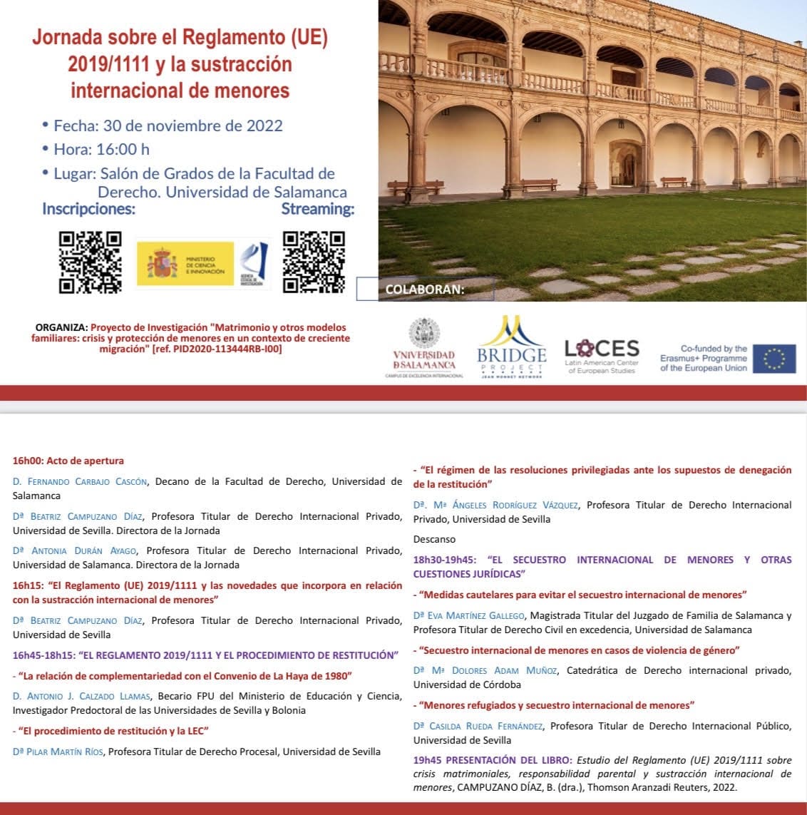 El Centro Latinoamericano de Estudios Europeos (LACES) y el proyecto de la Red Jean Monnet “Construyendo Derechos y Desarrollando Conocimiento entre la Unión Europea y América Latina – BRIDGE”, cofinanciado por el programa Erasmus+ de la Comisión Europea, tienen el placer de hacer la difusión del evento “Jornada sobre el Reglamento (UE) 2019/1111 y la sustracción internacional de menores”, organizado por el Proyecto de Investigación “El matrimonio y otros modelos de familia: crisis y protección de los menores en un contexto de creciente migración”, financiado por el Ministerio de Ciencia e Innovación de España.